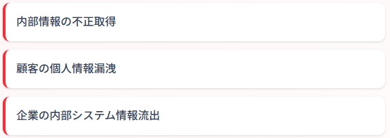 - 影響範囲:機密技術情報の外部流出