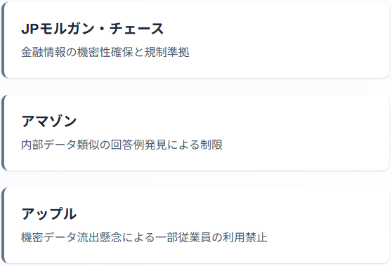 - JPモルガンやトヨタなど大手企業の利用禁止・制限の判断理由と背景