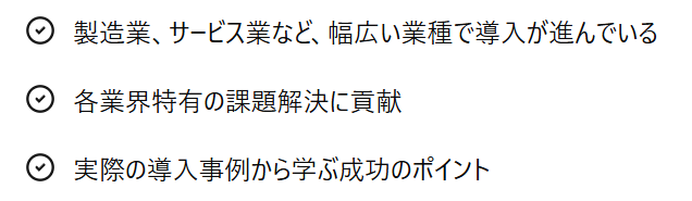 機能の理解を深めたところで、実際の導入事例を見てみましょう。法人向けGeminiは、製造業、サービス業など、幅広い業種で導入が進んでおり、各業界特有の課題解決に貢献しています。