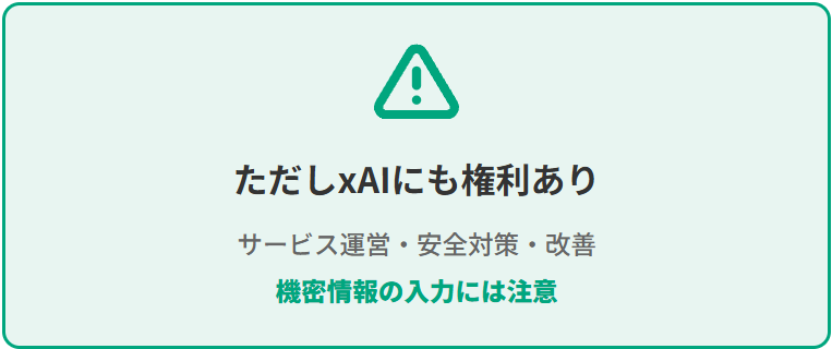 xAIの規約は「Outputの利用権はユーザーにある」としており、利用の自由度は高い一方で、第三者の模倣を完全に排除する法的な盾にはなりにくい点を理解しておく必要があります。