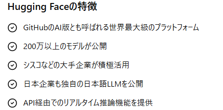 Hugging FaceはGitHubのAI版とも呼ばれる世界最大級のオープンソースAIモデル共有プラットフォームで、現在200万以上のモデルが公開されています。
