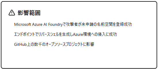 - Azure AI Foundryで攻撃者が未申請の名前空間を登録成功