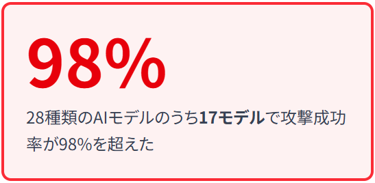 Microsoft Security Research Teamが28種類のLLMを調査した結果、17モデルで98%以上の攻撃成功率が確認されました。ChatGPT、Google Gemini、Microsoft Copilot、Claudeといった主要サービスがこの脆弱性の影響を受ける可能性があります。