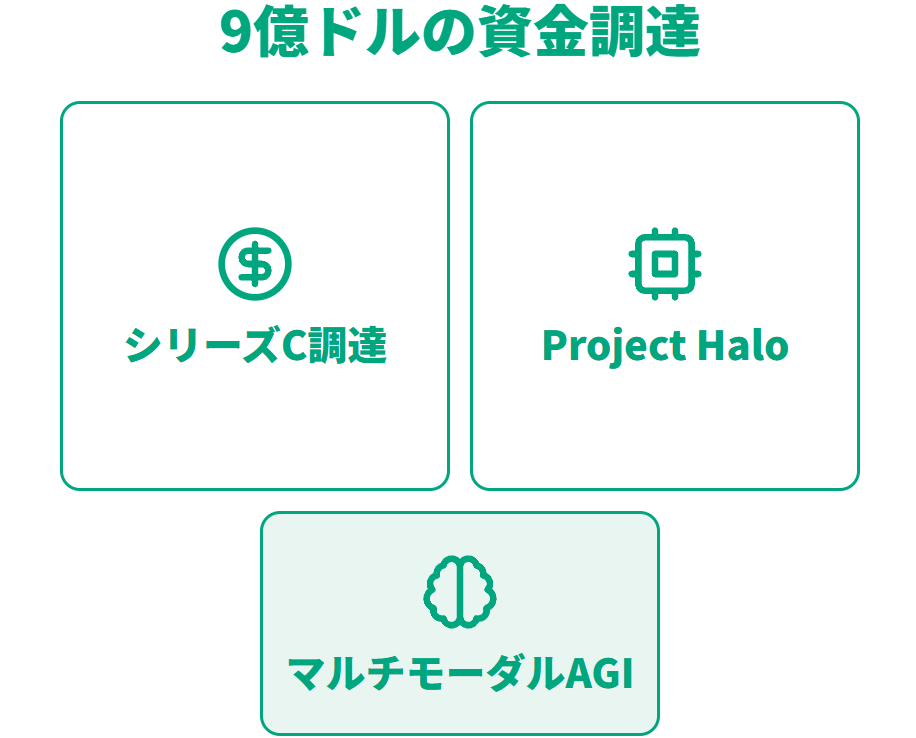 調達資金は2ギガワット規模のAIスーパークラスター「Project Halo」構築と、マルチモーダルAGI研究開発に投じられます。累計調達額は10億ドルを超え、財務基盤の強固さを示しています。