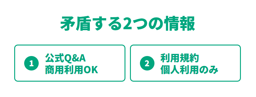 Microsoft公式Q&Aでは「商用目的で使用できる」と明言されている一方で、利用規約には「個人利用向け」という表記が残っており、この矛盾が企業の判断を難しくしています。