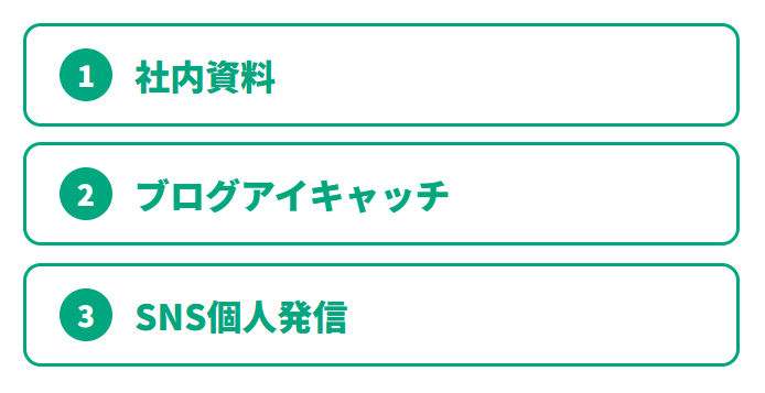社内資料やプレゼンテーション、ブログ記事、SNS投稿など、限定的な範囲での利用は比較的リスクが低く、Microsoft Designerの強みを活かせる場面です。