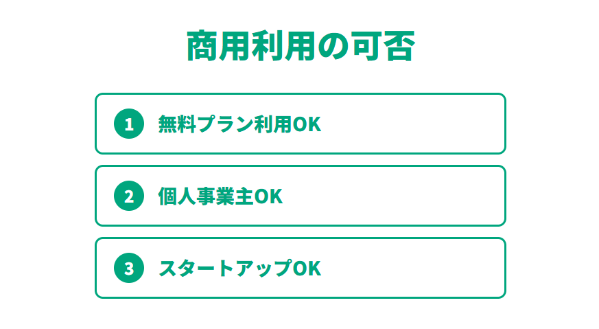 無料プランでも商用利用が認められているため、個人事業主や小規模チームでも安心して業務に活用できます。スタートアップ企業の多くが初期段階でフリープランを活用し、業務フローの構築やタスク管理を実施しています。