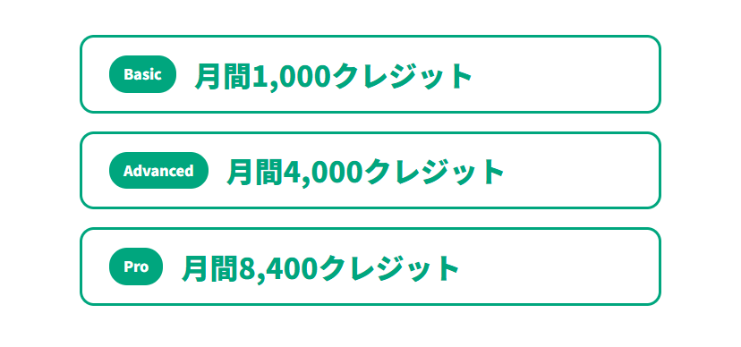 - 月1,000クレジット:Basicプラン(月額12ドル、年払いで10ドル)