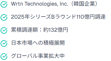 2025年にはシリーズBラウンドで110億円の資金調達を完了し、累積調達額は約132億円に達しています。日本市場への展開も積極的に進めており、グローバルな事業拡大を図っています。