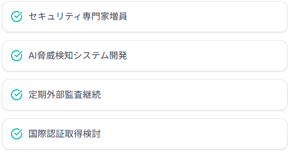 今後は資金調達を活用した更なる安全性強化により、より信頼性の高いサービスへの進化が期待されます。ただし、具体的な監査頻度や詳細な実施内容については、企業機密として詳細は非公開となっています。