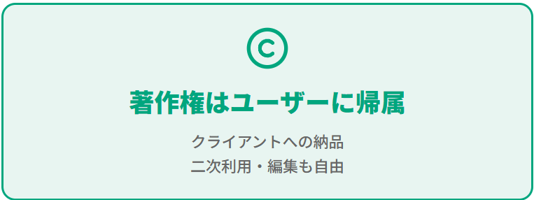 無料プランで生成した動画も著作権はユーザーに帰属し、商用利用は可能です。ただし、クレジット上限が125と少なく機能も制限されているため、企業の公式プロモーションやクライアント案件には適していません。