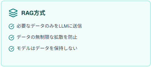 この方式により、データの無制限な拡散を防ぎ、必要最小限の情報だけを処理対象とできます。タスク実行に必要な背景情報のすべてが各リクエスト内に含まれるため、モデルはデータを保持しません。