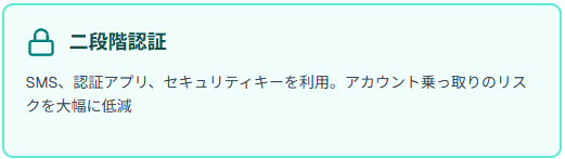 アカウント乗っ取りのリスクを低減します。SMS、認証アプリ、セキュリティキーのいずれかを選択し、全社員に設定を義務付けましょう。