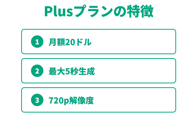 ChatGPT Plusは月額20ドル(約3,000円)で、Soraの基本機能を利用できるエントリープランです。